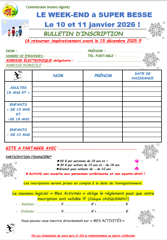 * DÉJEUNER DU SAMEDI 10/01/2026 + DINER (le Bar sera ouvert jusqu'à minuit!)