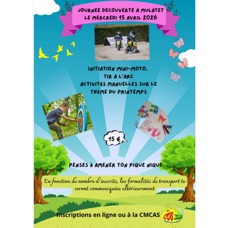 Durant cette journée, tu pourras découvrir le tir à l'arc, conduire les mini-motos, et pour les plus créatifs te faire plaisir sur des activités manuelles sur le thème du printemps.