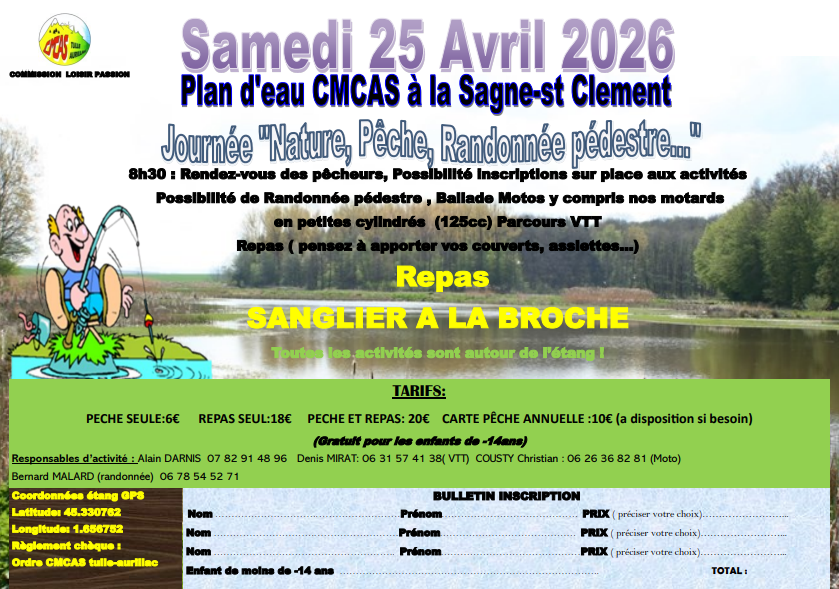 N'OUBLIEZ PAS DE PRENDRE VOS CARTES MEMBRES (4€ par personne) CARTE PÊCHE ANNUELLE (10€)